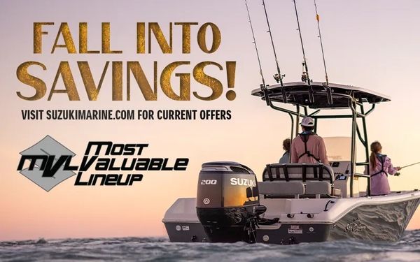 Now through OCTOBER 31ST, 2025, Suzuki Marine is offering MVL REBATES on any qualifying 2.5hp-350hp engines up to $500*. There is no better time to purchase the ULTIMATE outboard for your new boat package or to repower your current boat. Contact your authorized Suzuki Marine dealer for additional information.